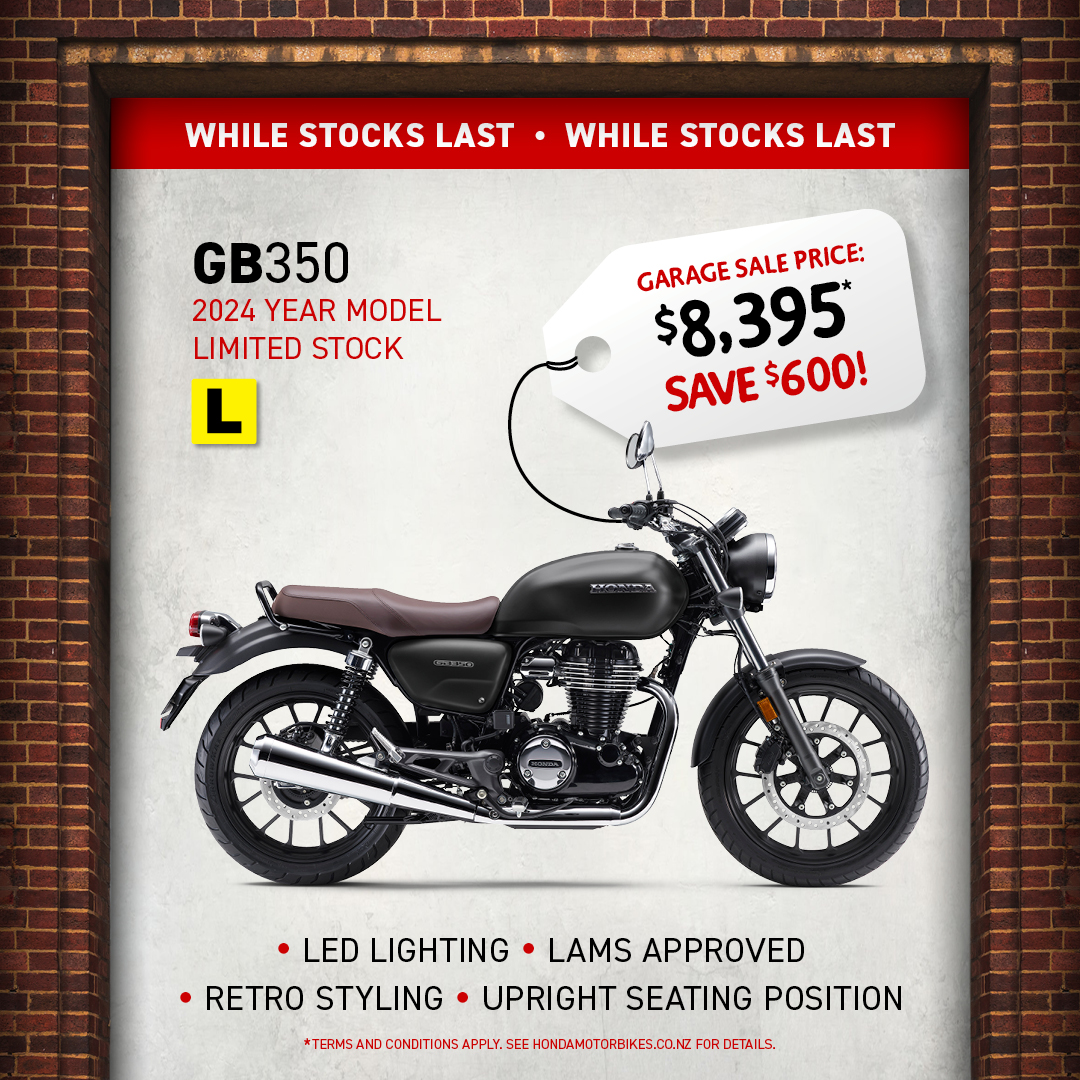 Offer available from 9th February until 31st March or while stocks last, at participating Honda dealers, and cannot be used in conjunction with any other offer. Savings amount includes GST. Savings amounts as follows is off RRP -2024 GB350 Black save $600, 2023 CB750 Hornet Black and White, save $1,200, 2023 CRF1100AS D2 (Africa Twin Adventure Sport DCT) white, save $6000, 2023 CRF110F Teal/White, save $300. 2023 CRF300 Rally Red, save $2500, 2023 NSC110 White, Blue, Black and Red, save $250, 2023 NT1100A (Manual) Black, save $4,500, 2023 NT1100D (DCT) Black save $4,500. 2023 CL500 Scrambler Black, save $3,950 + accessories package** as below terms and conditions. 2023 XL750 Transalp black, white, and grey, save $1,000 + Accessories package > as below terms and conditions. Offer is only available while stocks last from selected Honda Road motorbike dealers.